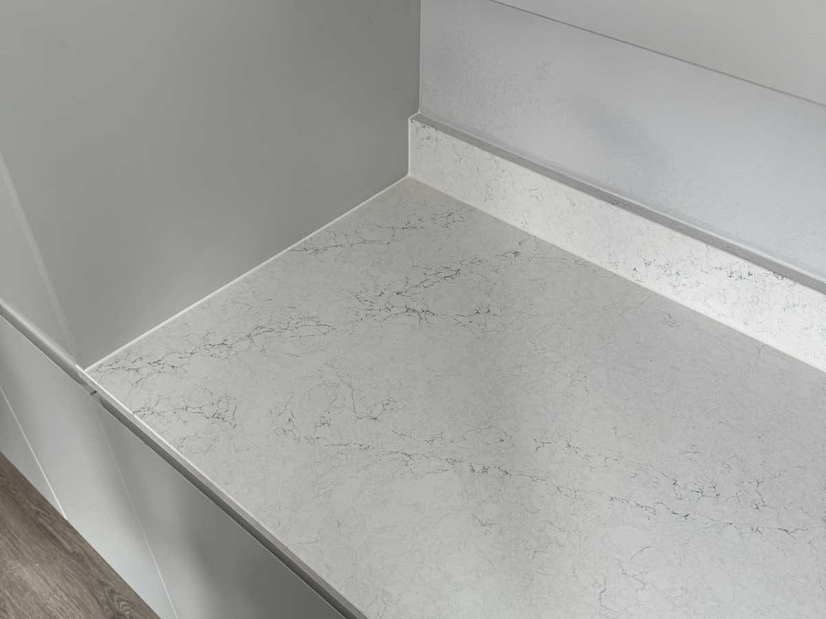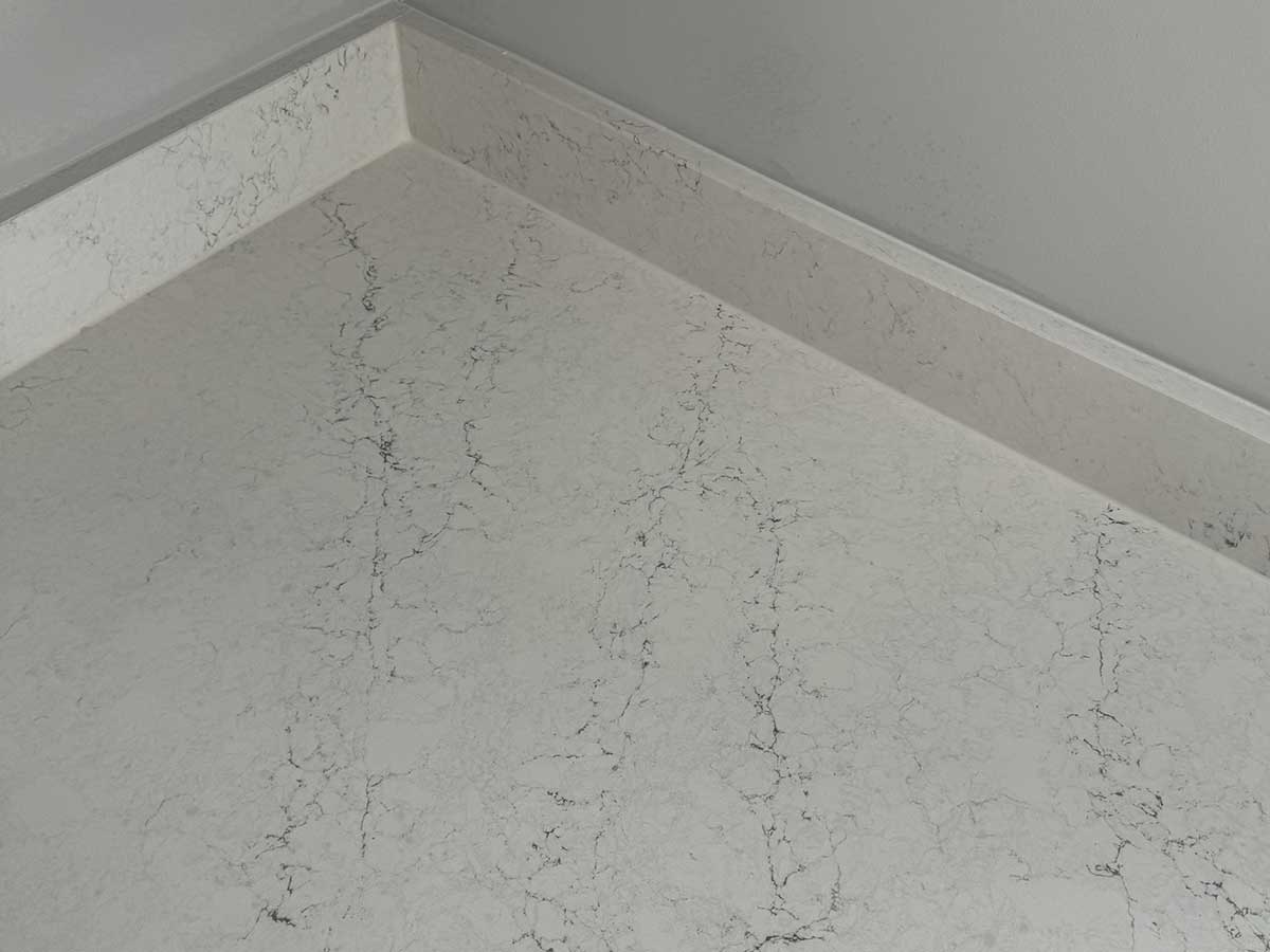 Because quartz upstands are straight and rigid, gaps will be visible if there are any imperfections or variations on the wall profile. To cover these gaps between the wall and the upstands, it is recommended that plastering or tiling be completed after the worktop installation.